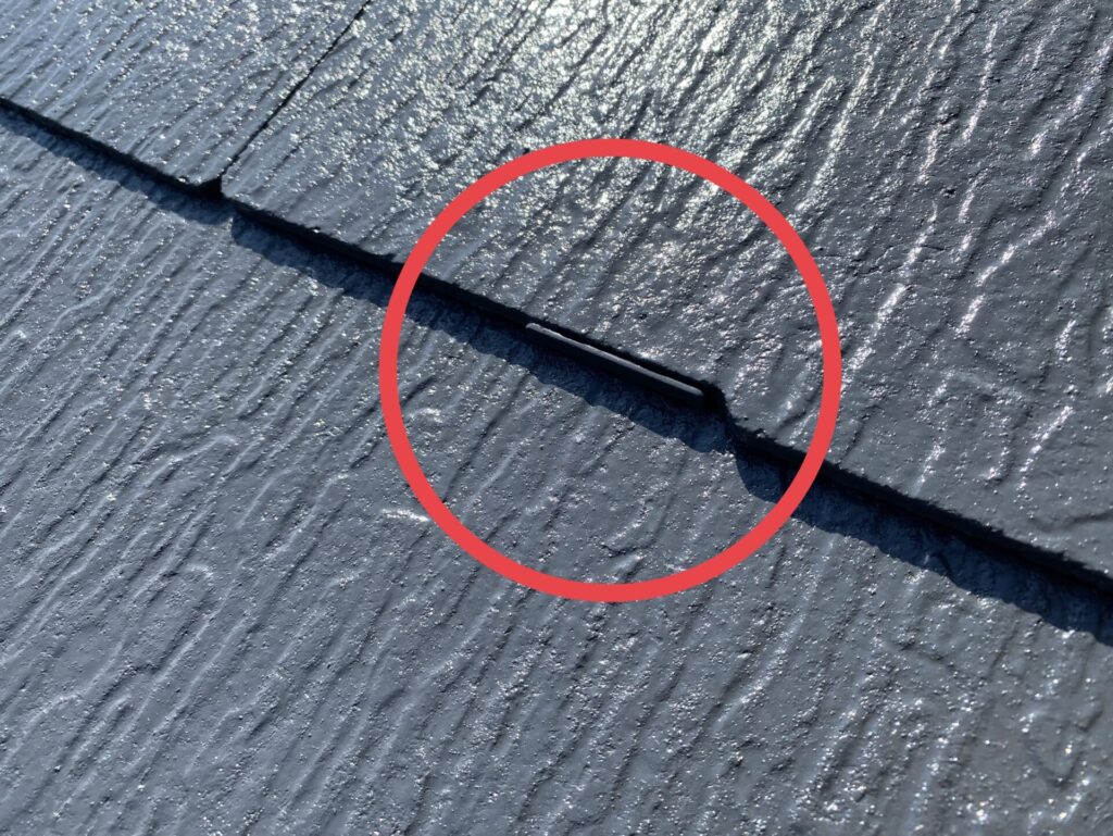 塗装の前に、スレート屋根の隙間を確保する「タスペーサー」を設置。塗料で屋根材が密着してしまうのを防ぎ、雨水の逃げ道を作ることで雨漏りや内部結露を防止します。