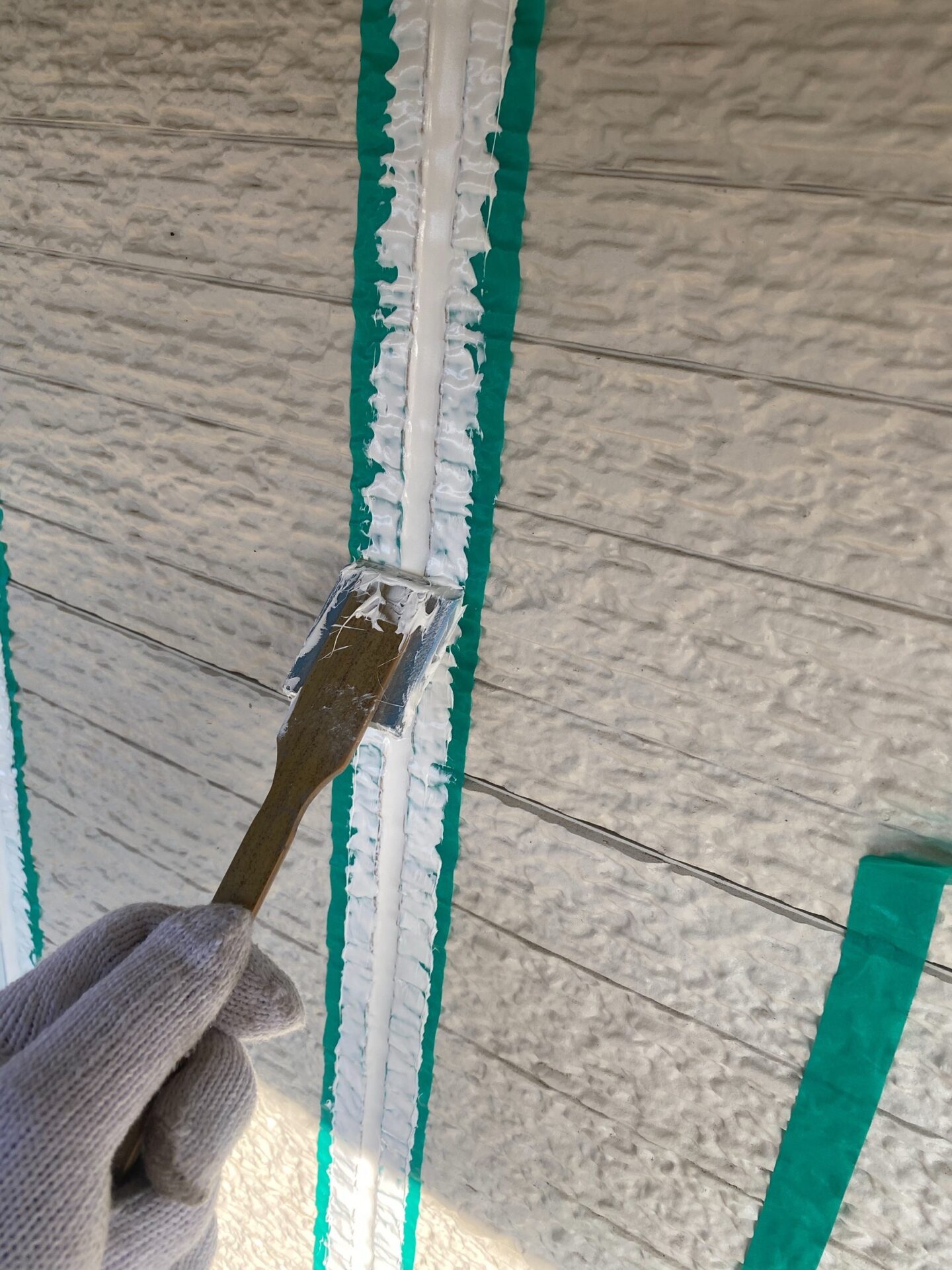 ただ平らにするだけでなく、サイディングの凹凸にしっかり密着させることで、気密性と防水性を極限まで高めます。職人の手さばきが光る瞬間です。